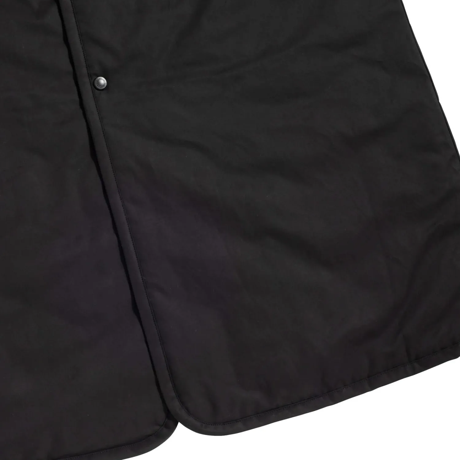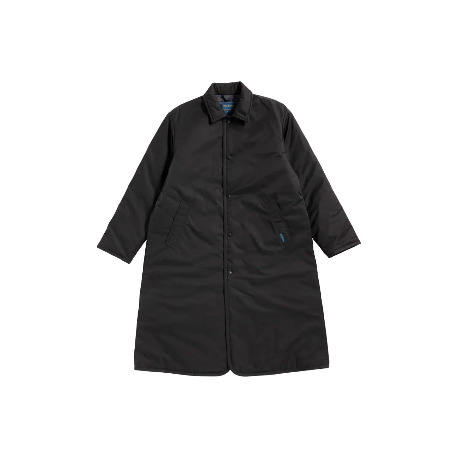 Frakken har draperingen til en tradisjonell overfrakk, men med funksjonaliteten som tilbys av vannmotstanden og innvendig quilting.