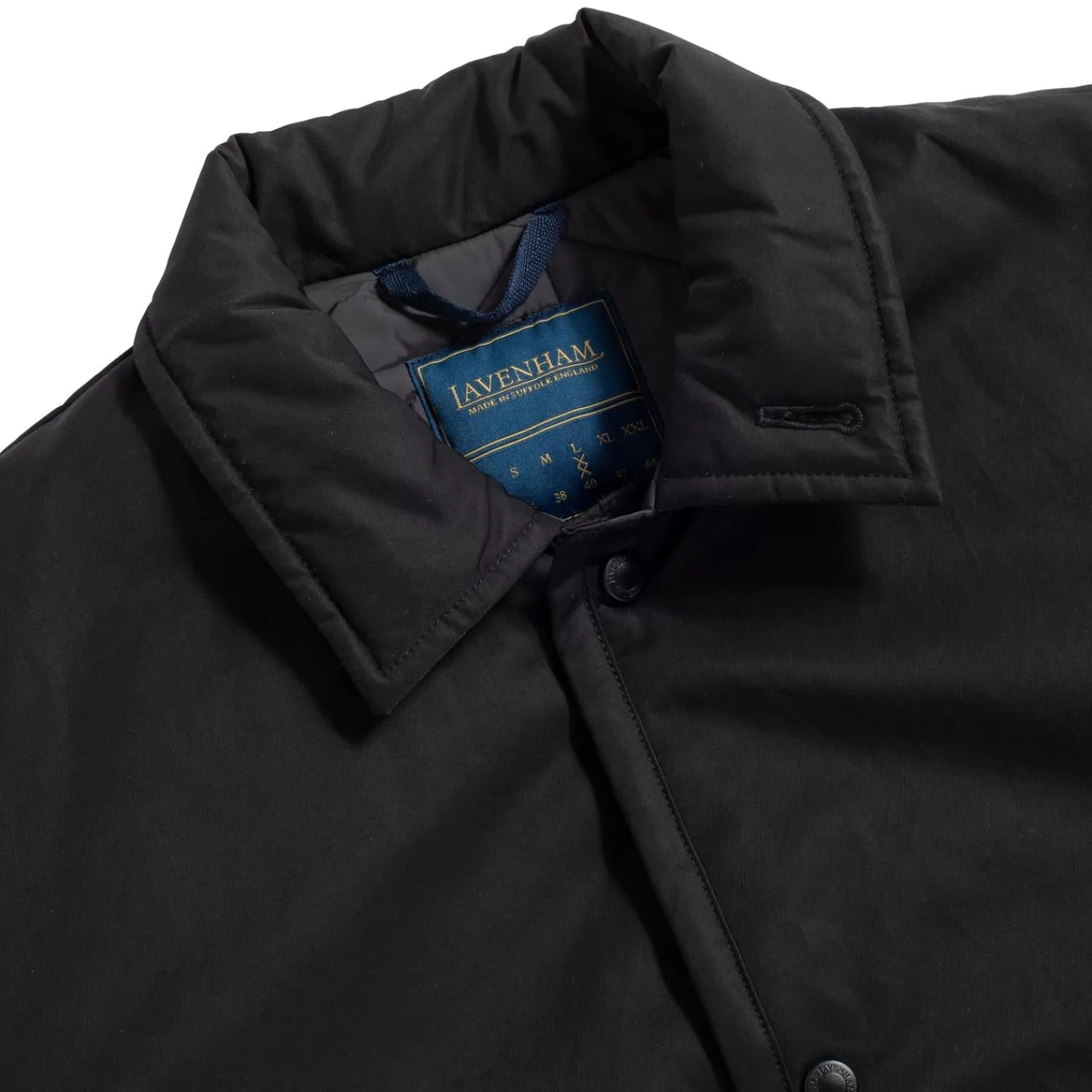 Frakk uten signaturquilting for en ren «kontur» av et av Lavenhams klassiske produkter. Stoffet som brukes er laget i Italia av Olmetex som spesialiserer seg på vannavstøtende stoffer og utfører hele produksjonsprosessen i huset. Stoffet er hovedsakelig nylon med 26% bomull som gir tekstur samtidig som det forblir vannavstøtende.