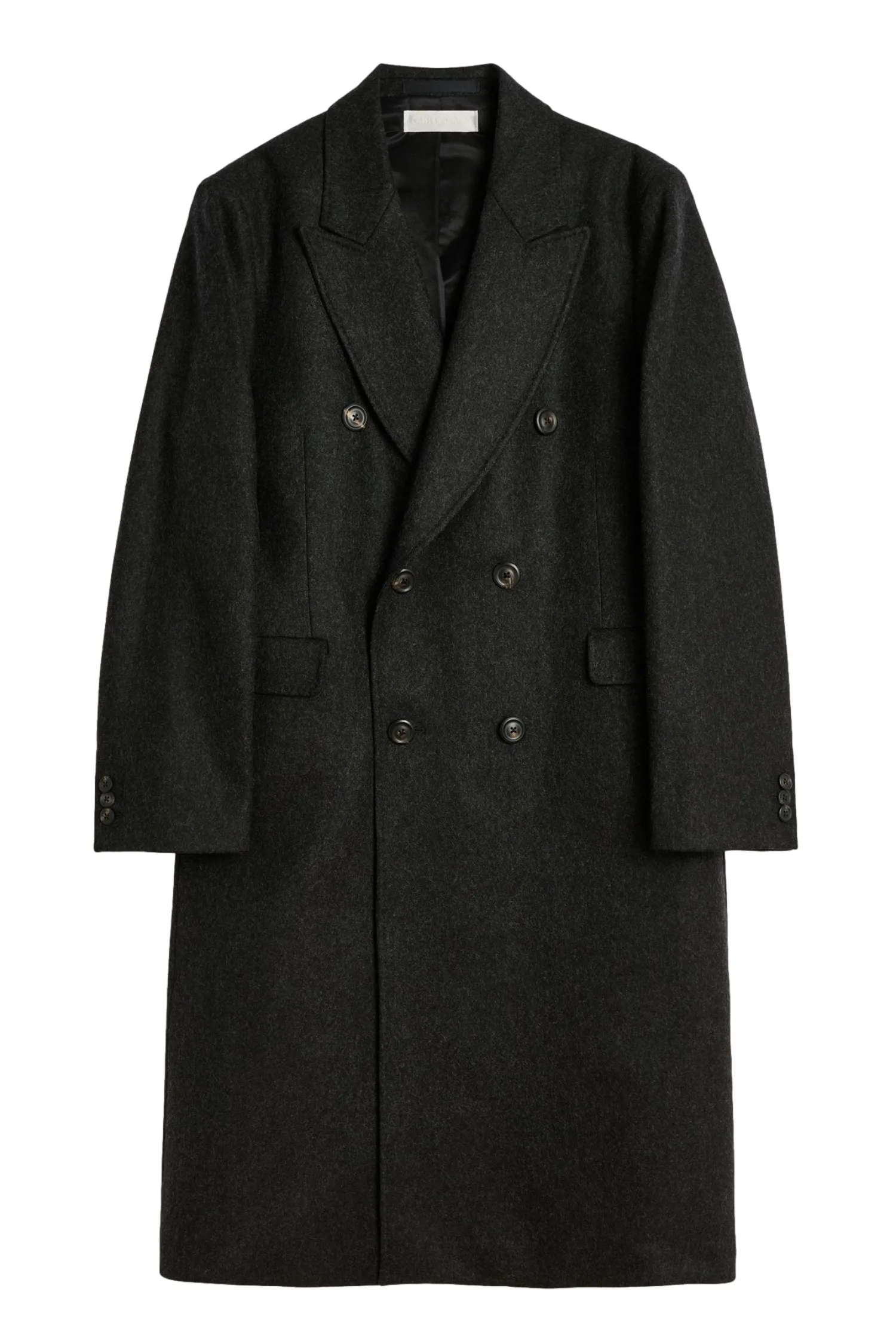 Produsert i italiensk jomfruull og polyamid med vannavvisende egenskaper, har denne hvalfrakken for menn en avslappet, skreddersydd passform og har en dobbeltspent konstruksjon med hornknapper, spiss slag, heldekkende fôr, lommer med klaff og en enkel splitt bak.