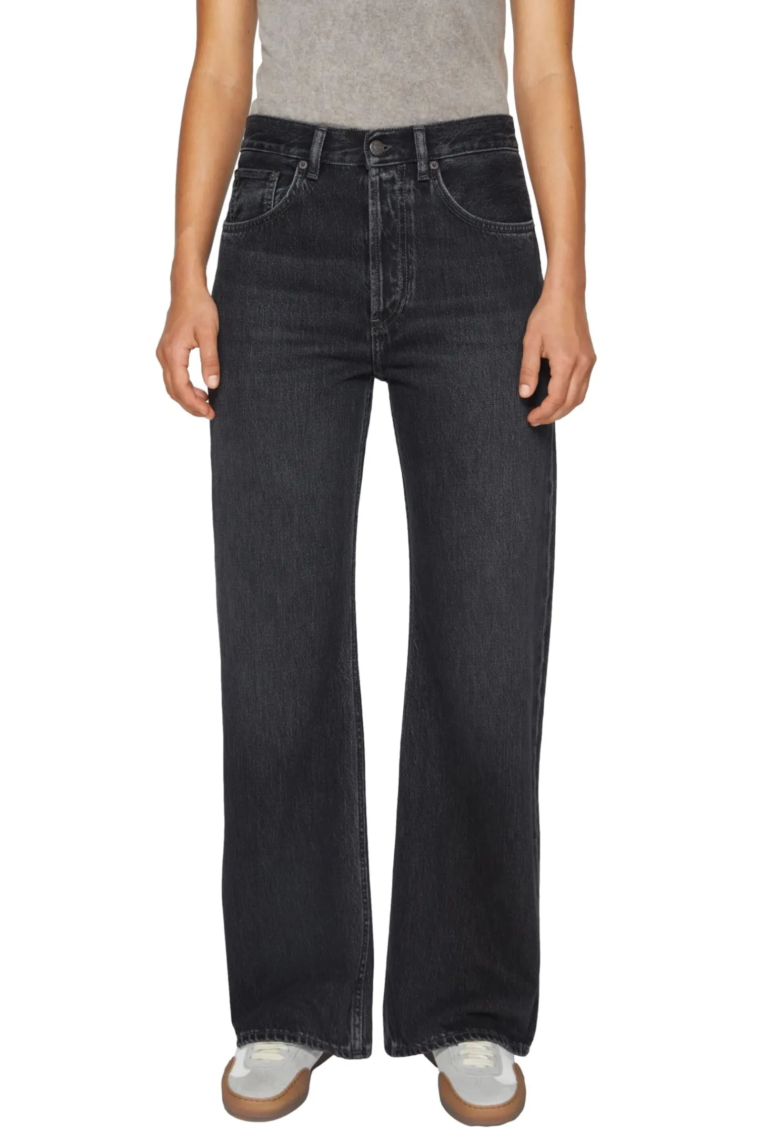 Jeans i løs og avslappet passform med middels høyde på livet. Vid i leggen.