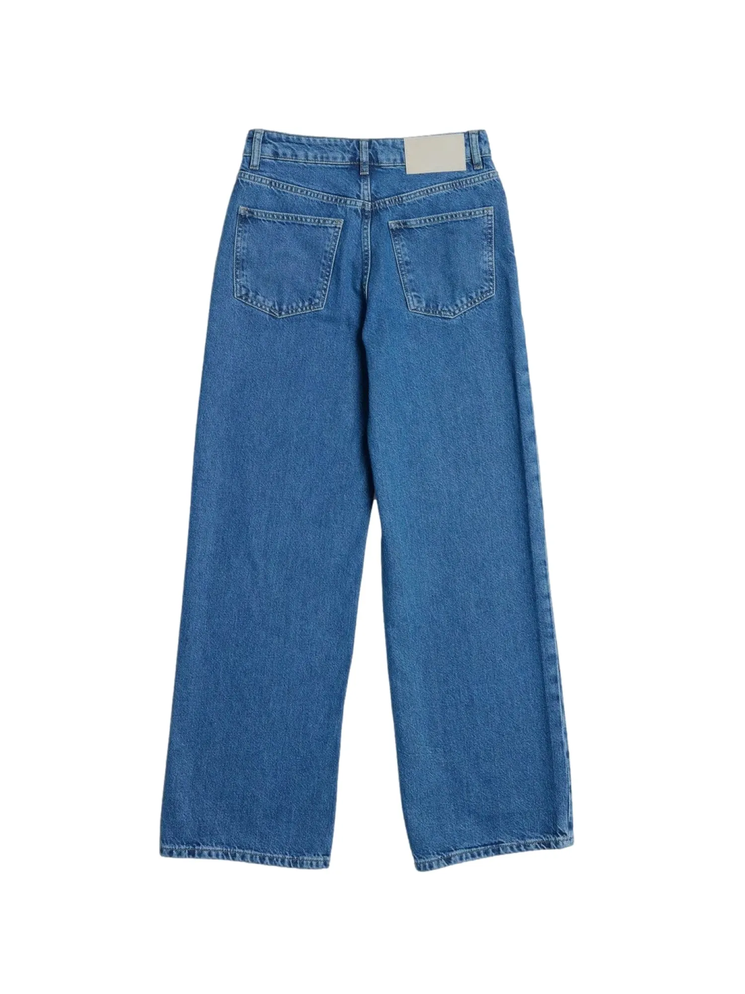 Jeans i vid passform med høyt liv. Brodert logo på myntlomme.