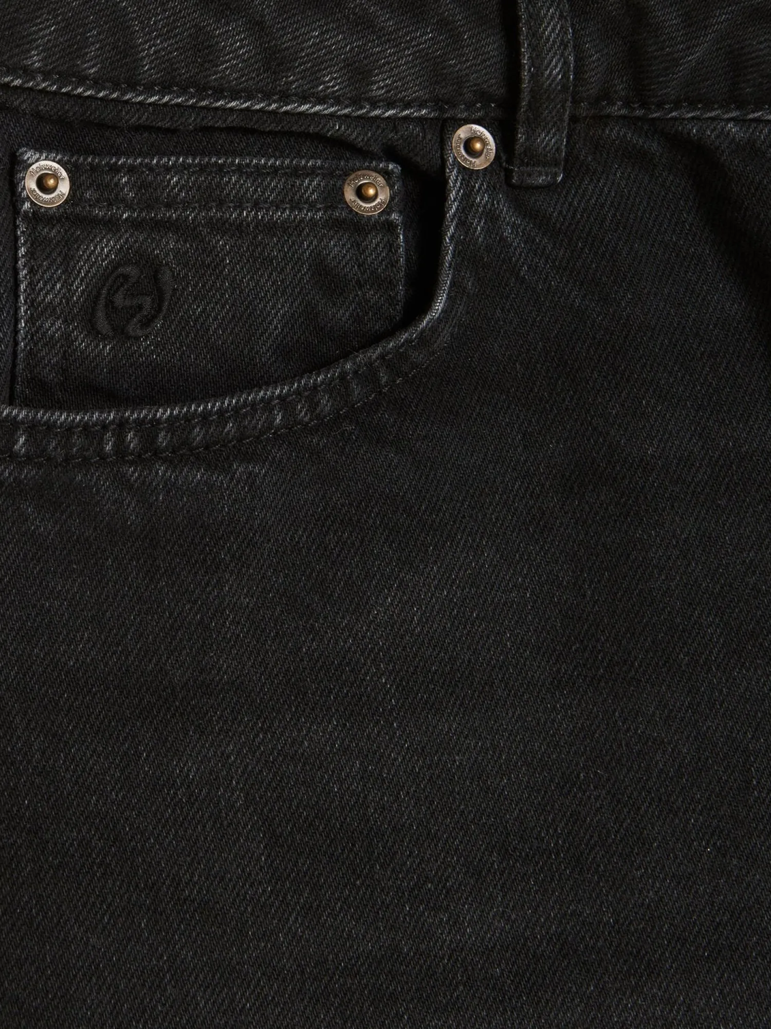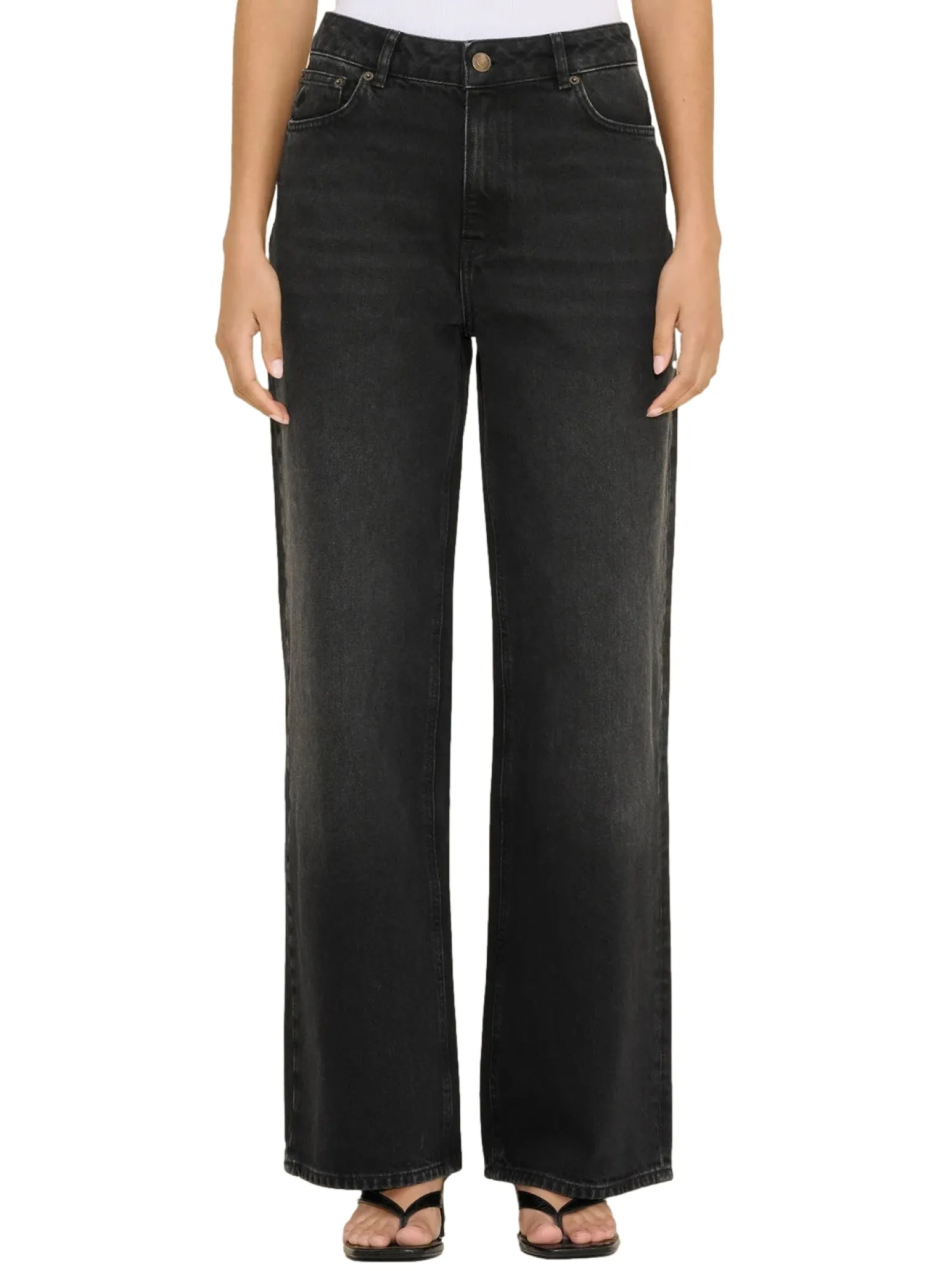 Jeans i vid og løs passform med høyt liv. Liten brodert logo.