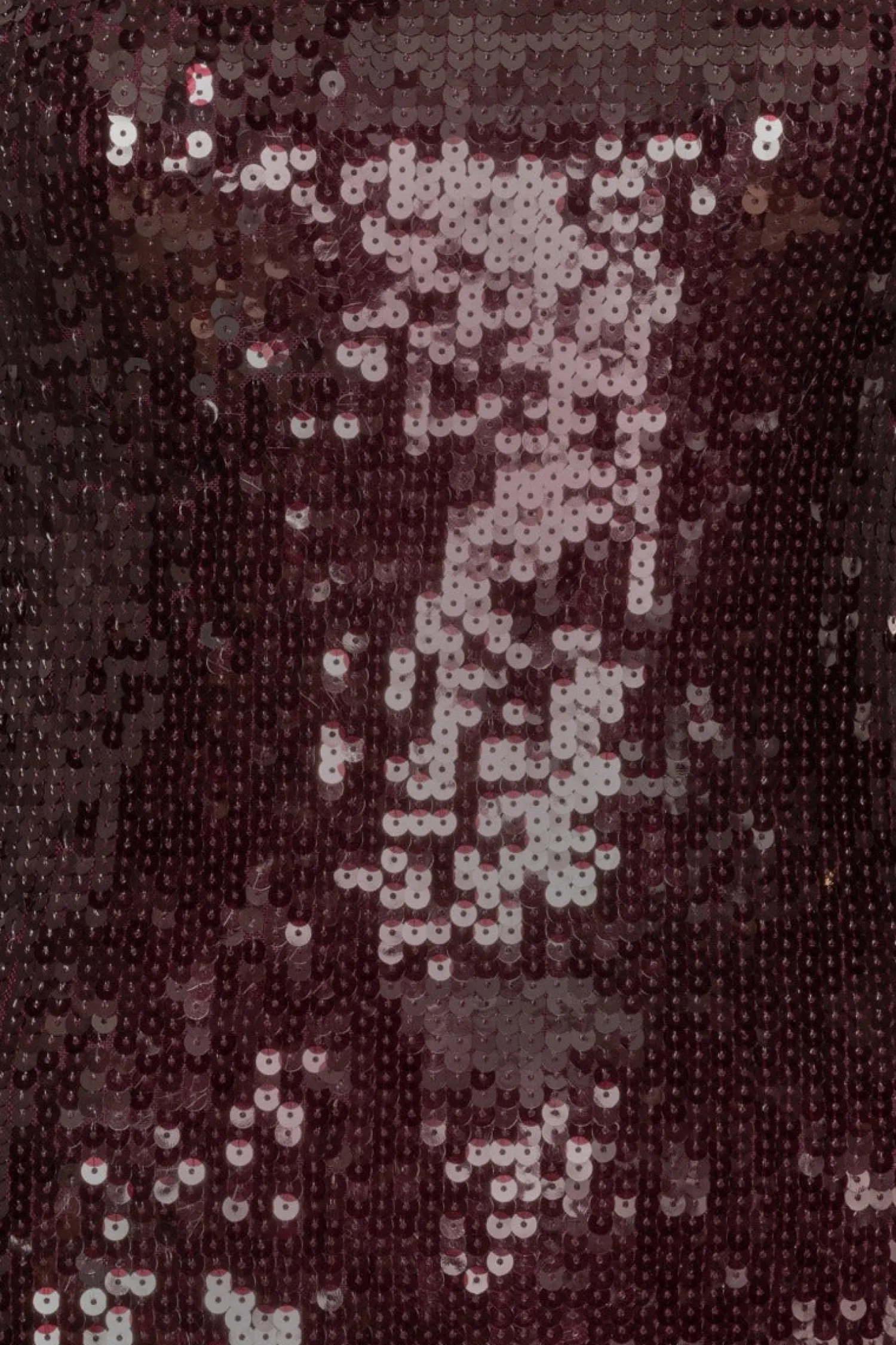 Sequins LS Mini Dress Burgundy har en tettsittende silhuett med kort fald og lange ermer. Den har utsvingte mansjetter, rund hals og er helt dekket av paljetter. Kjolen lukkes med en skjult glidelås bak og er designet for å skape en slående og langstrakt form.