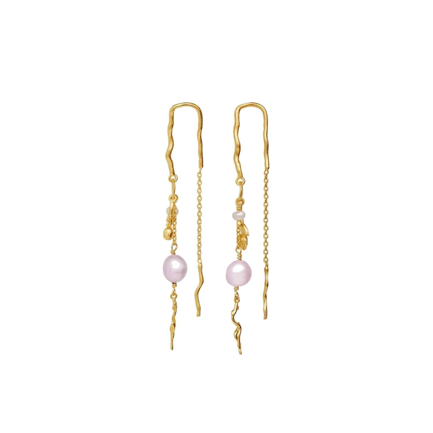 Materialer: Resirkulert sterlingsølv (925) belagt med 18K gull / 925 sterlingsølv, hvit rund perle, rosa ferskvannsperle Størrelse: Lengde 55 mm: Lengde 55 mm.