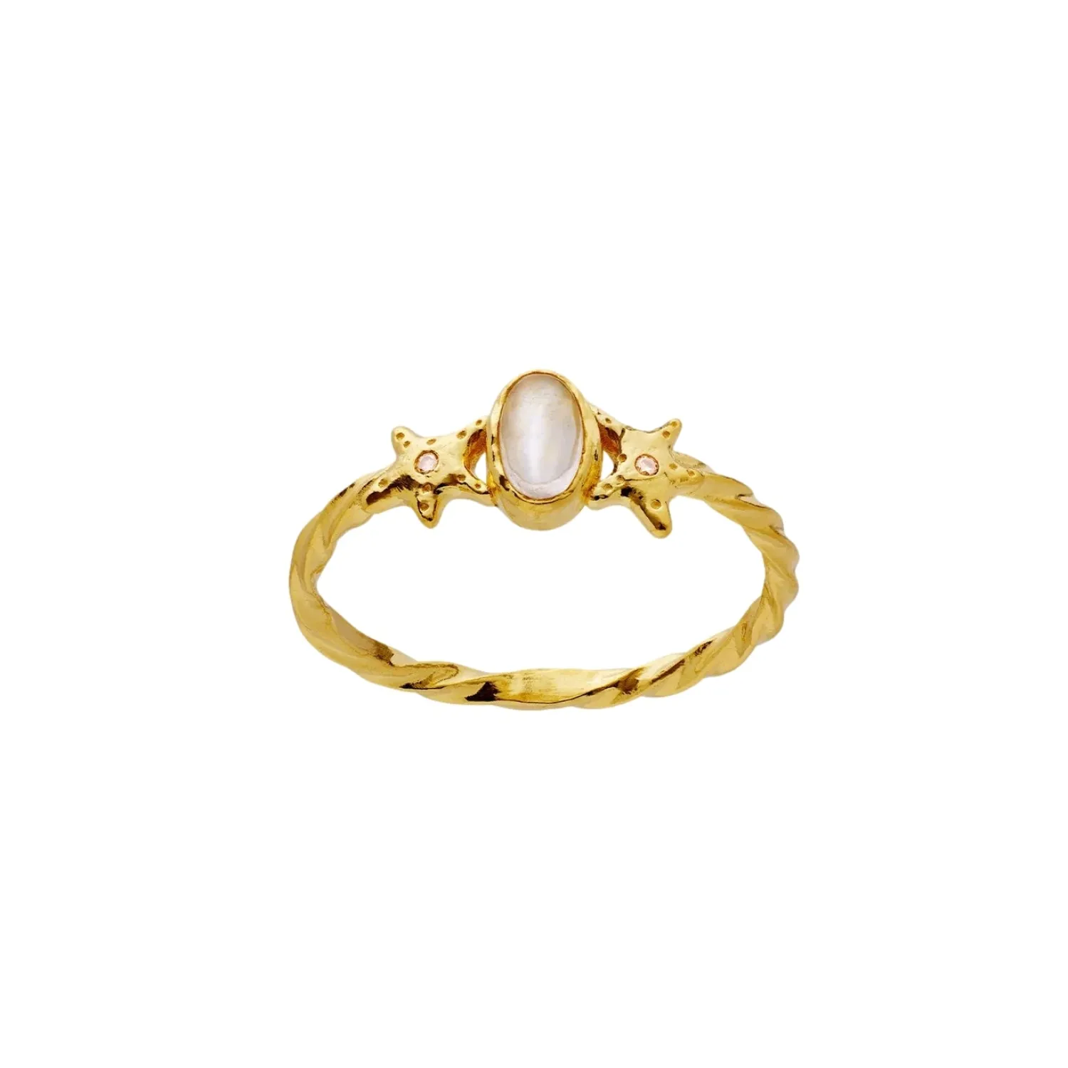 Med et bånd buet som havbunnen, små sjøstjerner utsmykket med blinkende zirkoner, og en fristende regnbuemånestein, representerer Ula ringen alle edelstenene som gjemmer seg i havet.