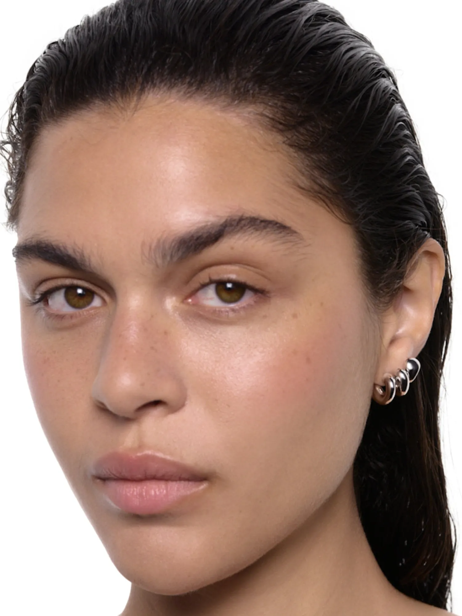 En spiral virvler oppover øret og skaper en illusjon av tre tykke ringer. En futuristisk elegant ørering som krøller opp øret.