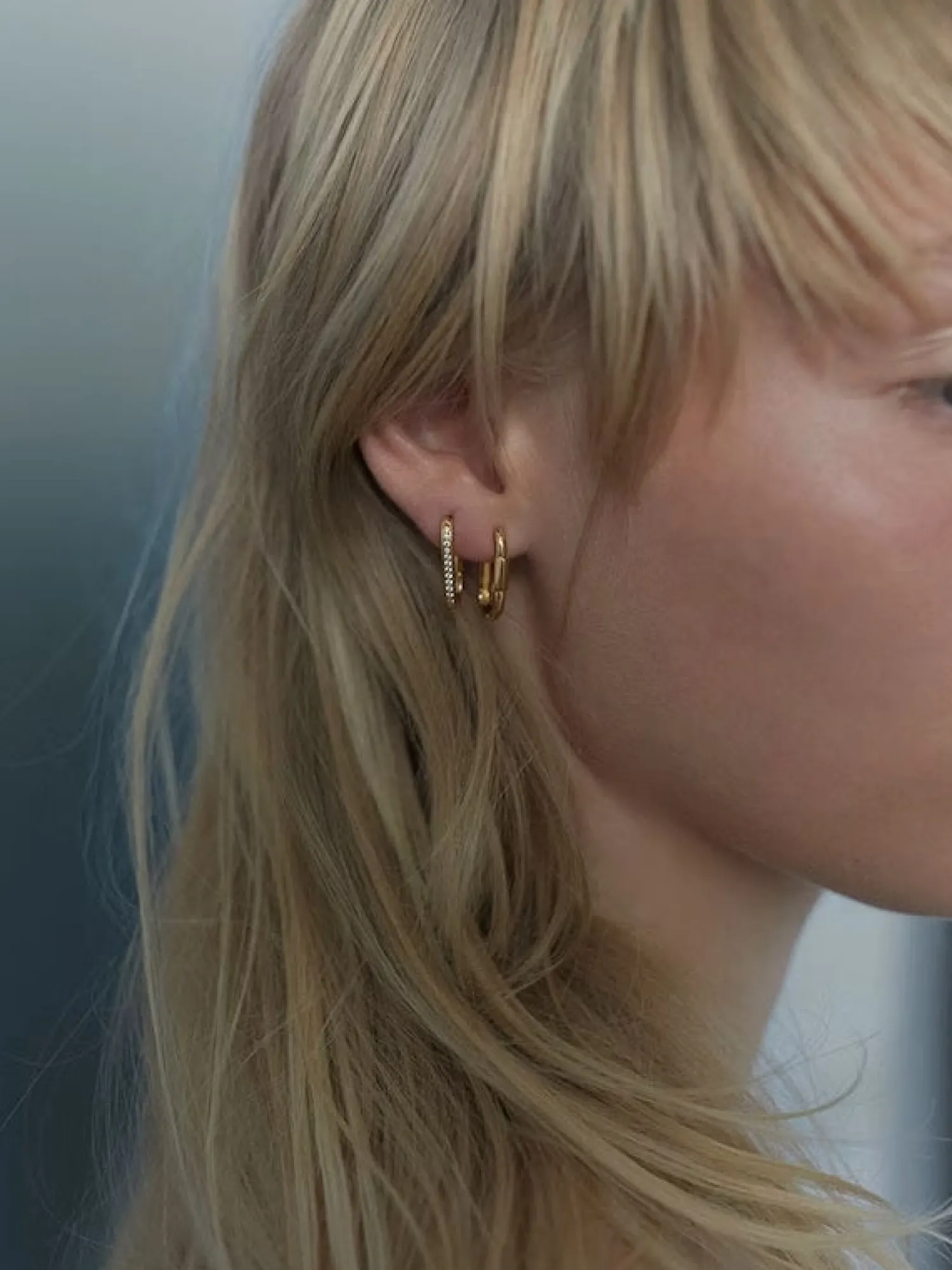 Øredobb fra Maria Black. Øreringen kan brukes med baksiden frem – party in the front, utility in the back. Sekskantet detalj på baksiden av øreringen for en industriell look.