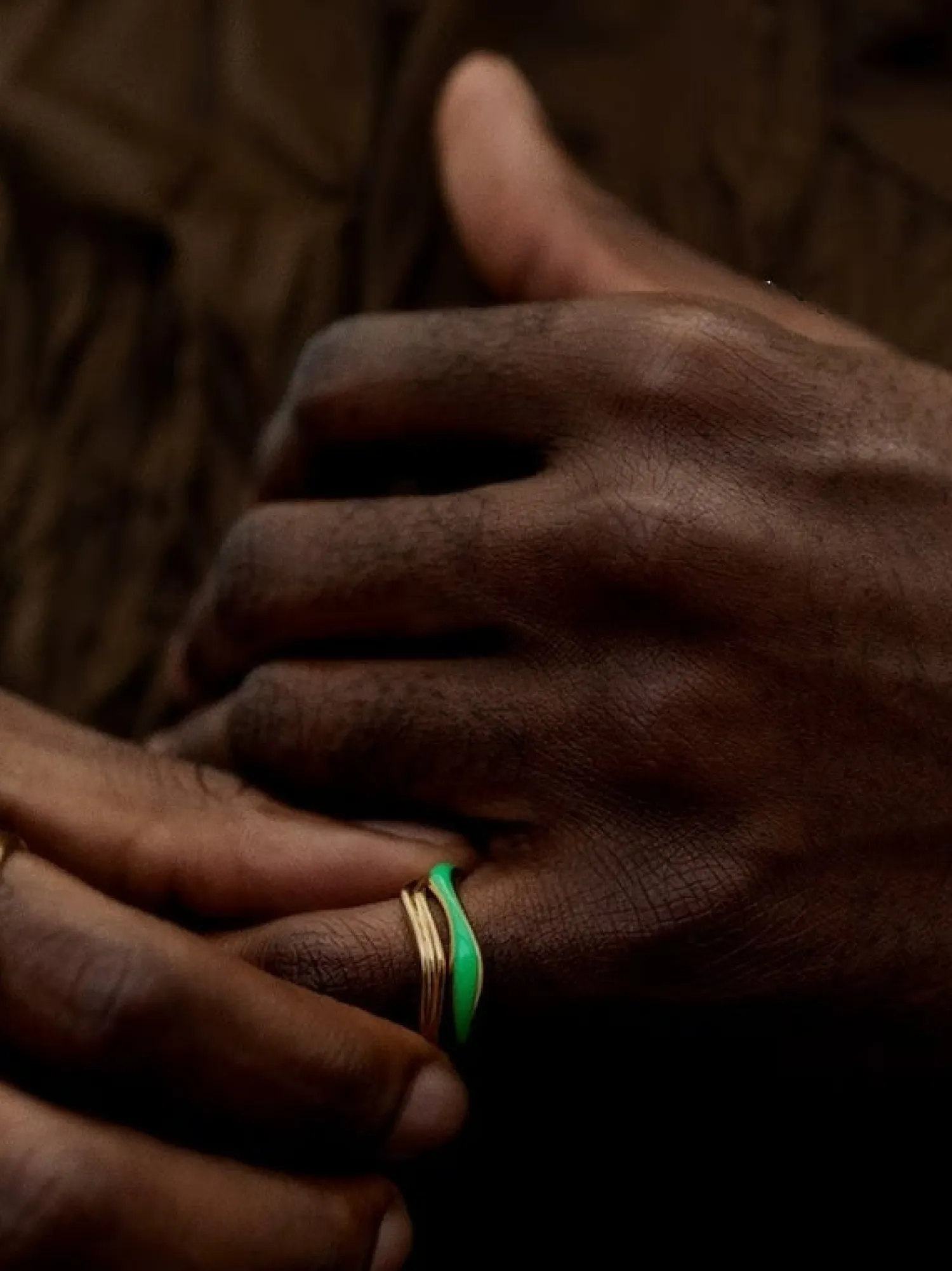 En enkel, wavy ring. Bruk den alene eller stack den opp med ringen Vayu eller Aura.