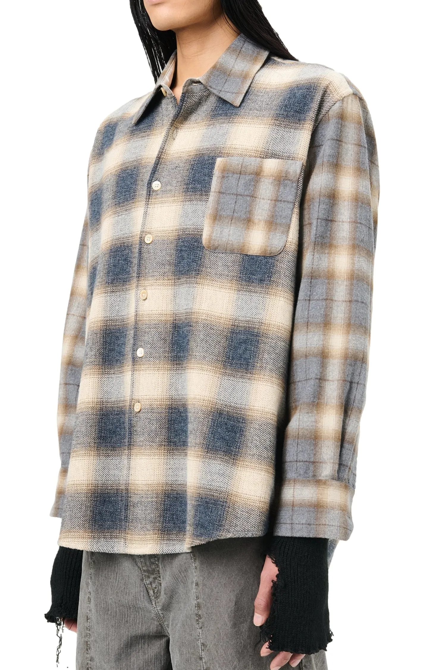 Skjorte med rutemønster og brystlomme.