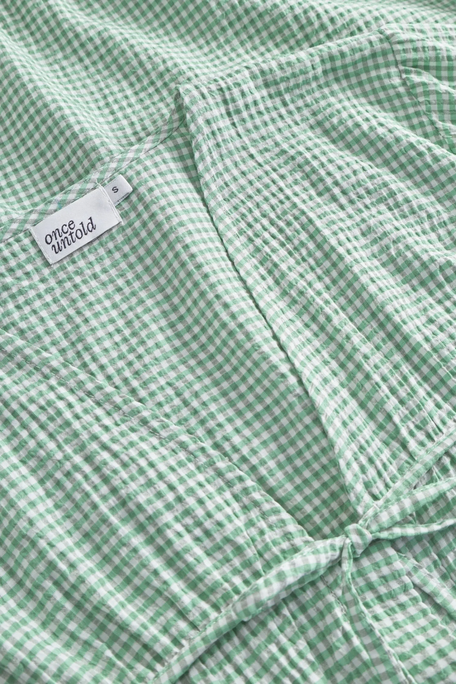 Indiana stringblusen er en flatterende bluse med et klassisk rutete mønster og doble knytedetaljer foran, denne blusen gir en leken vri på garderoben din. Skjorten har V-utringning, og lett oppblåste skuldre.