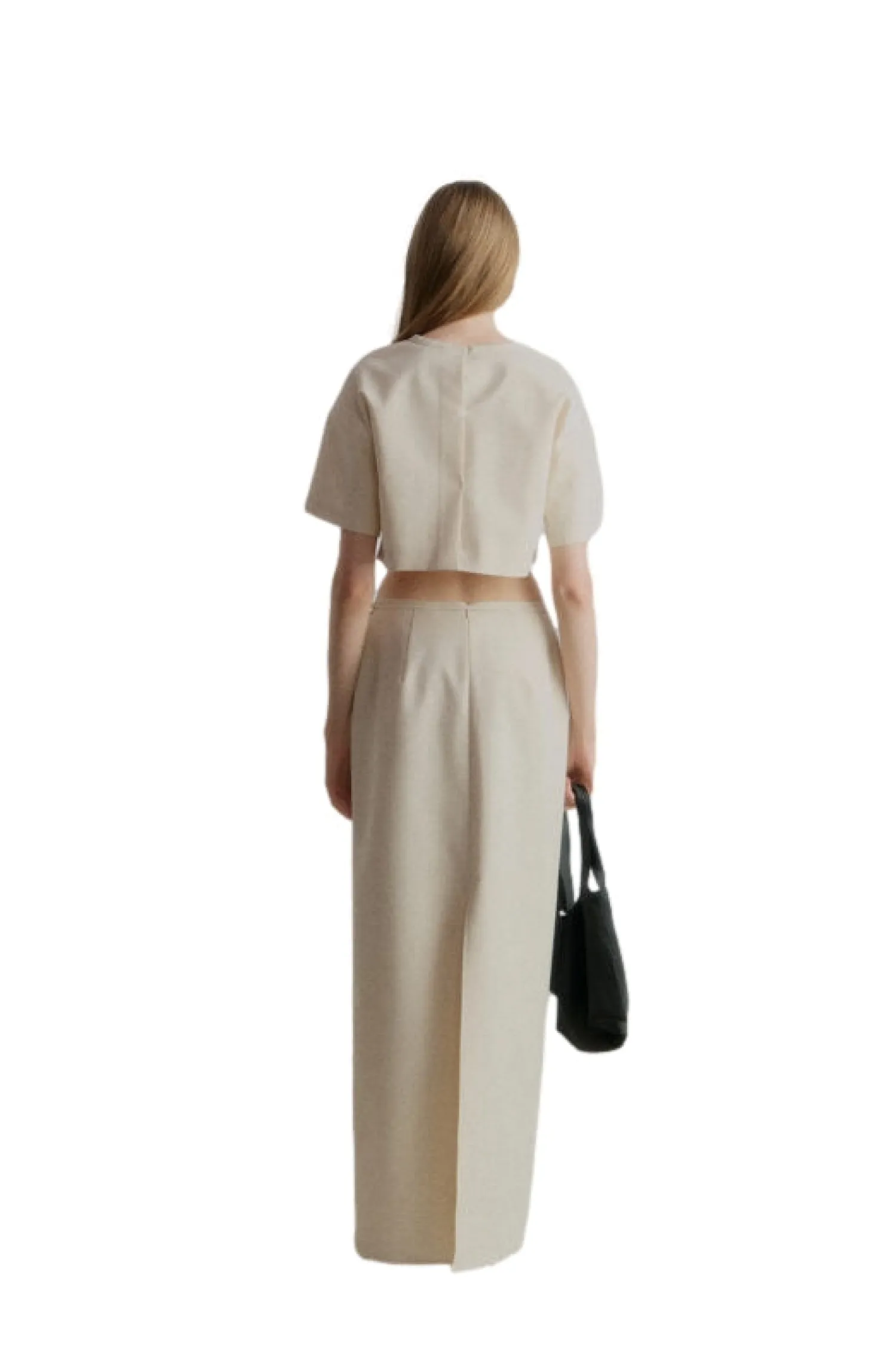 Langt slankt skjørt med glidelås i siden og midjestropp med logopynt. Det perfekte skjørtet som passer til alle topper.