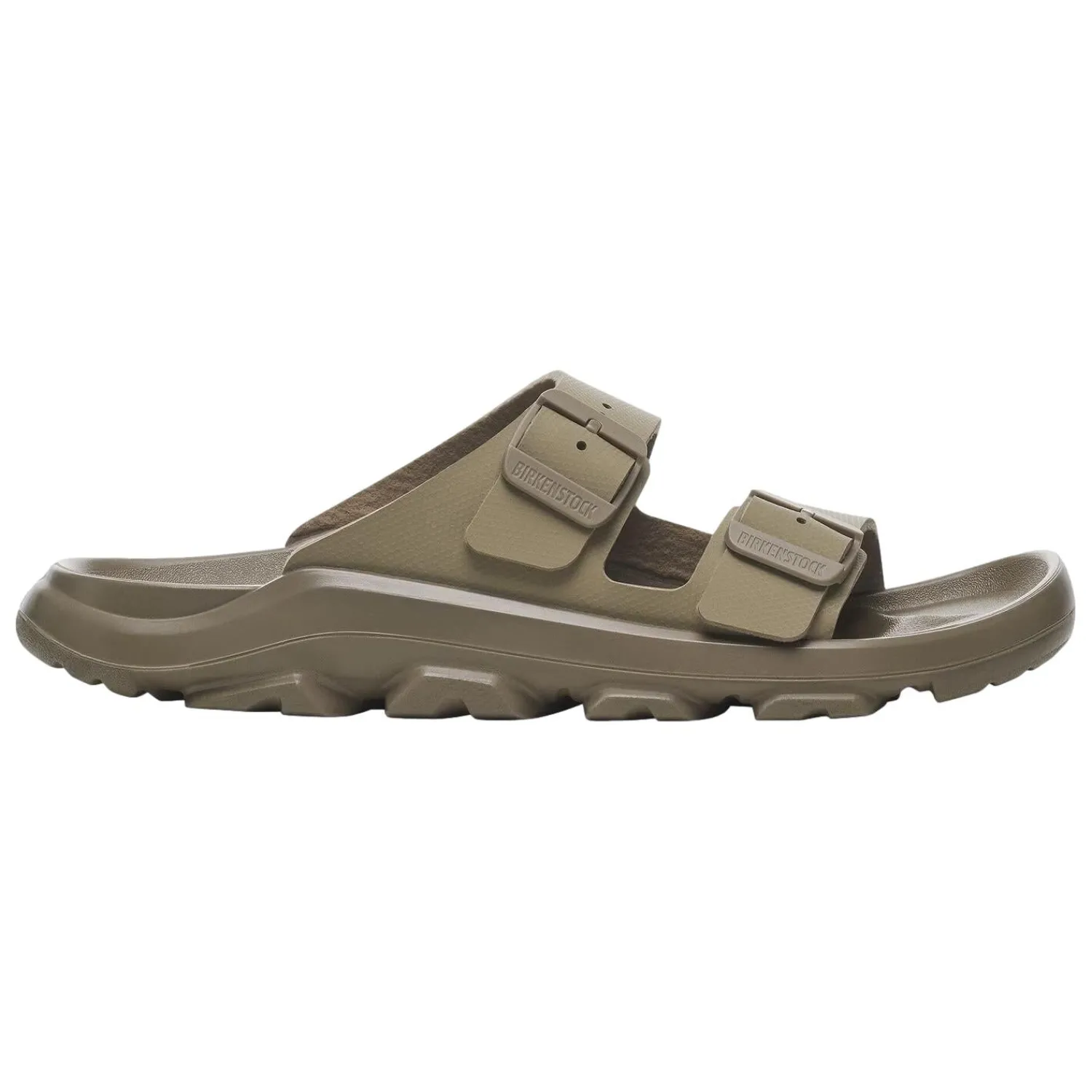 BIRKENSTOCK Mogami Terra er utrustet for alle eventyr i hverdagen. Dette sørger den vannfaste fotsengen med tåvern samt den høyfunksjonelle sålen for, som skummes i to lag mot fotsengen og overmaterialet. Sandalen er dermed spesielt fleksibel i ethvert terreng og har lang levetid. Polyuretansålen blir skummet to lag til fotsengen og er dermed svært fleksibel, har godt tak og spesielt lang levetid. Denne varianten viser seg med to reimer, som er utstyrt med moteriktig og funksjonell BIRKENSTOCK Stealth-spenne. Denne spennen, som er produsert av rustfri plast, imponerer ikke bare på grunn av sin lange levetid, men også på grunn av den minimalistiske designen. Overmaterialet består av det hudvennlige og slitesterke syntetiske materialet Birko-Flor®.