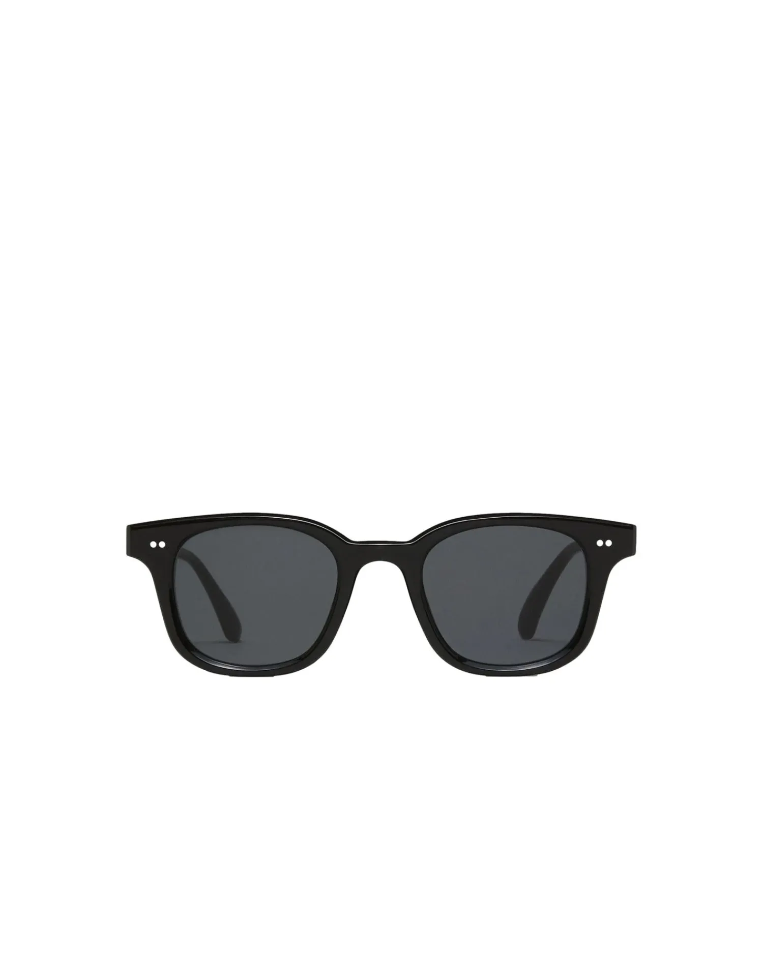 02 er en sofistikert konisk silhuett med omhyggelige dimensjoner og en slank profil detaljert med sølvfargede naglehengsler. Distinkte skråsnitt rammer inn de UV-beskyttende CR39-linsene.