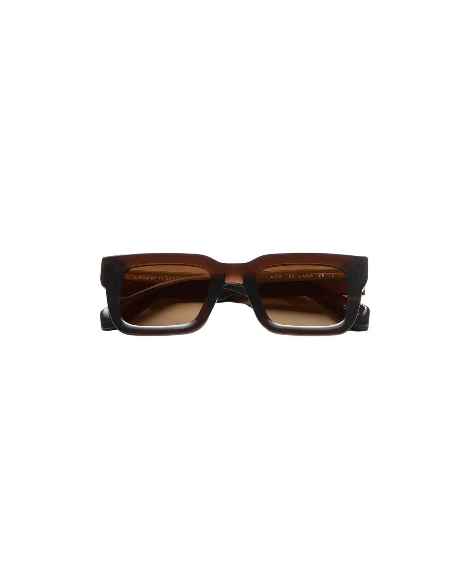 Solbriller i firkantet design med tykke kanter. Håndlaget kvalitet.