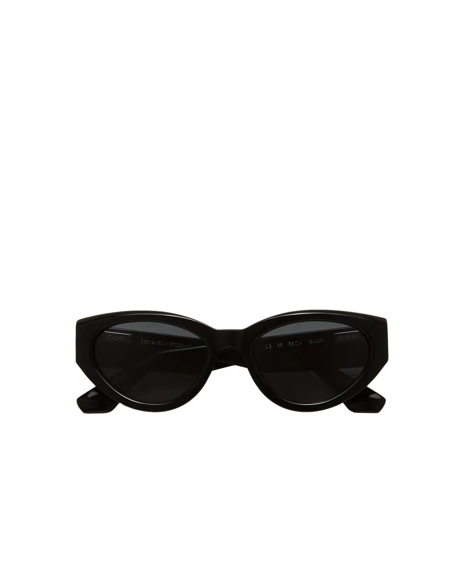 06 er en moderne katteøye med firkantede vinger. Fasede kutt gir dybde til den buede silhuetten, mens lineære stenger og vinklede buer gir intriger. Utstyrt med mykt avrundede UV-beskyttende CR39-linser.