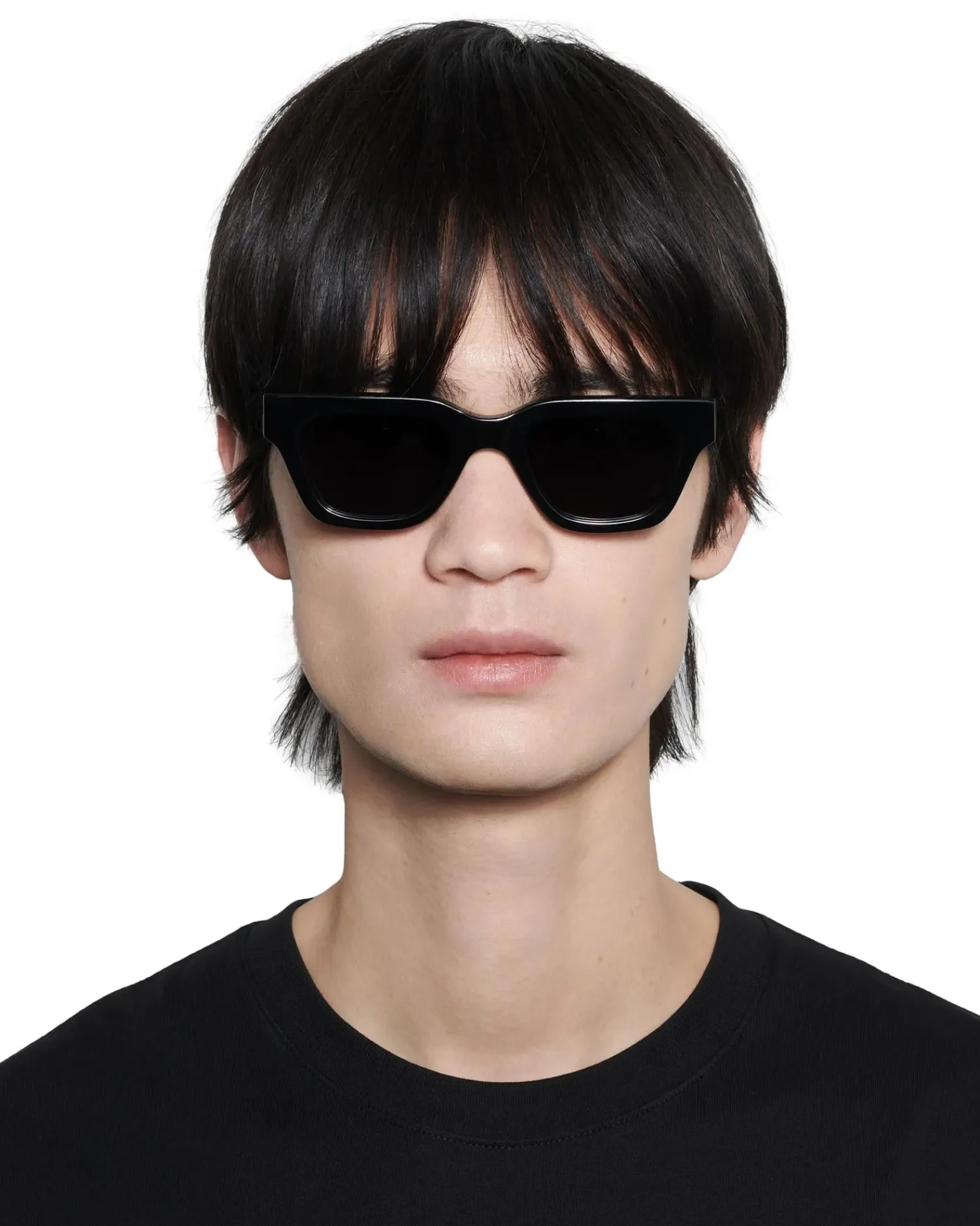 11 er en elegant og androgyn wayfarer-silhuett håndlaget i Mazzucchelli-acetat. Den tykke rammen er designet for å føles grafisk og sterk, og balanserer dristige proporsjoner med raffinert kurvatur og elegante, skråstilte stenger. Utstyrt med mykt avrundede UV-beskyttende CR39-linser.
