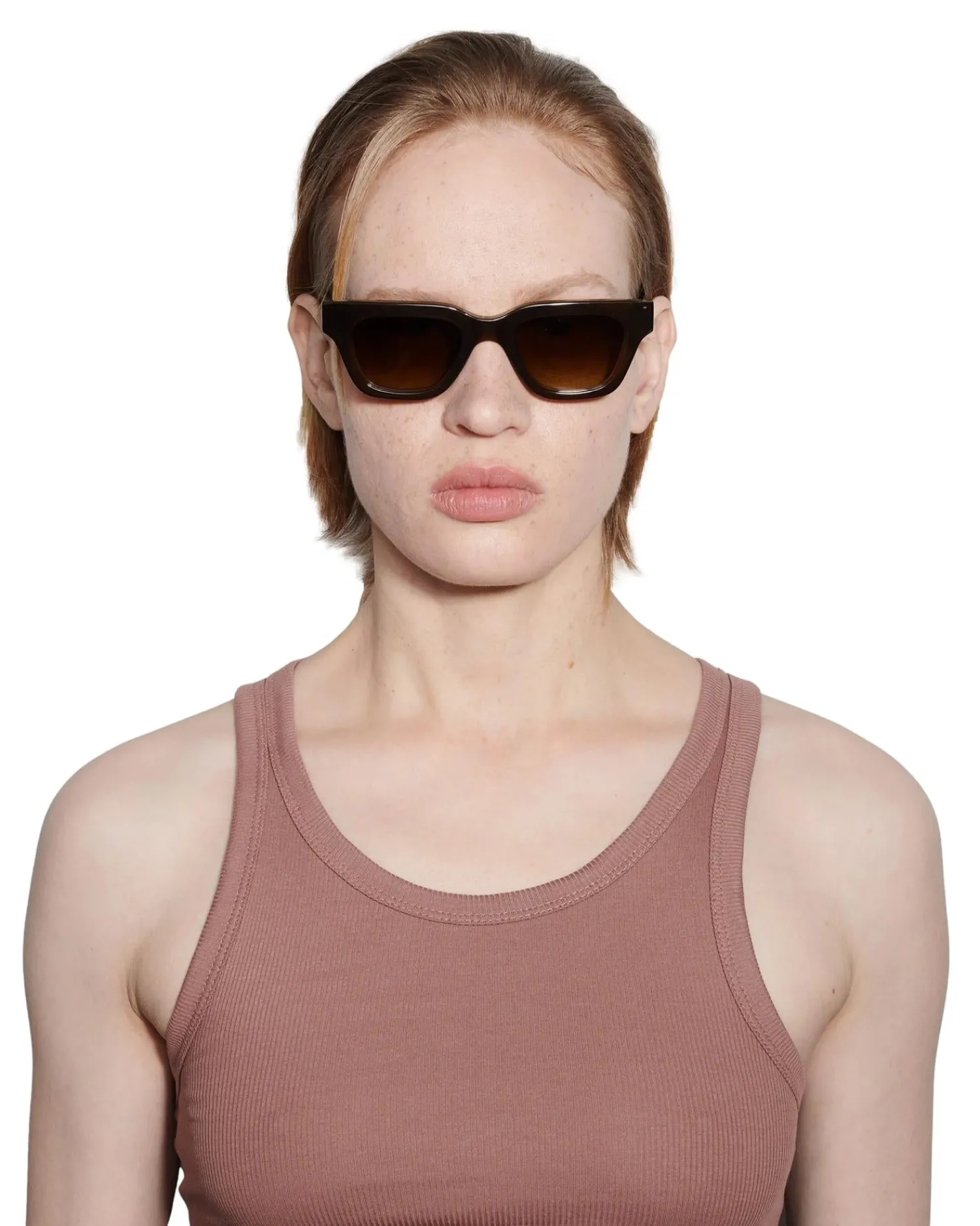 11 er en elegant og androgyn wayfarer-silhuett håndlaget i Mazzucchelli-acetat. Den tykke rammen er designet for å føles grafisk og sterk, og balanserer dristige proporsjoner med raffinert kurvatur og elegante, skråstilte stenger. Utstyrt med mykt avrundede UV-beskyttende CR39-linser.