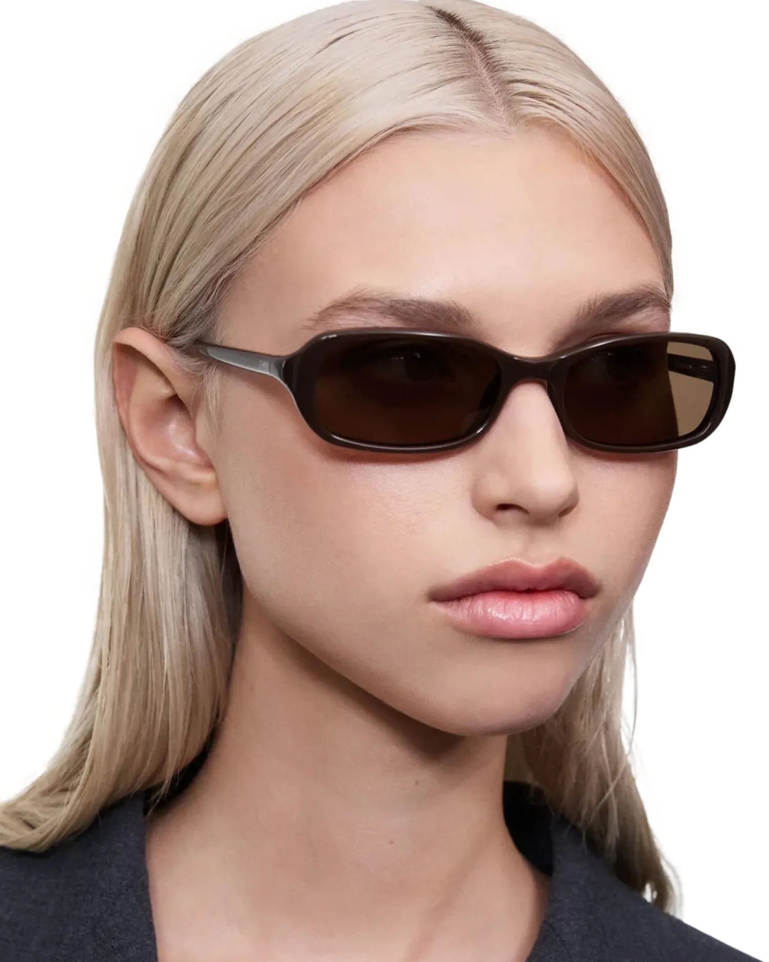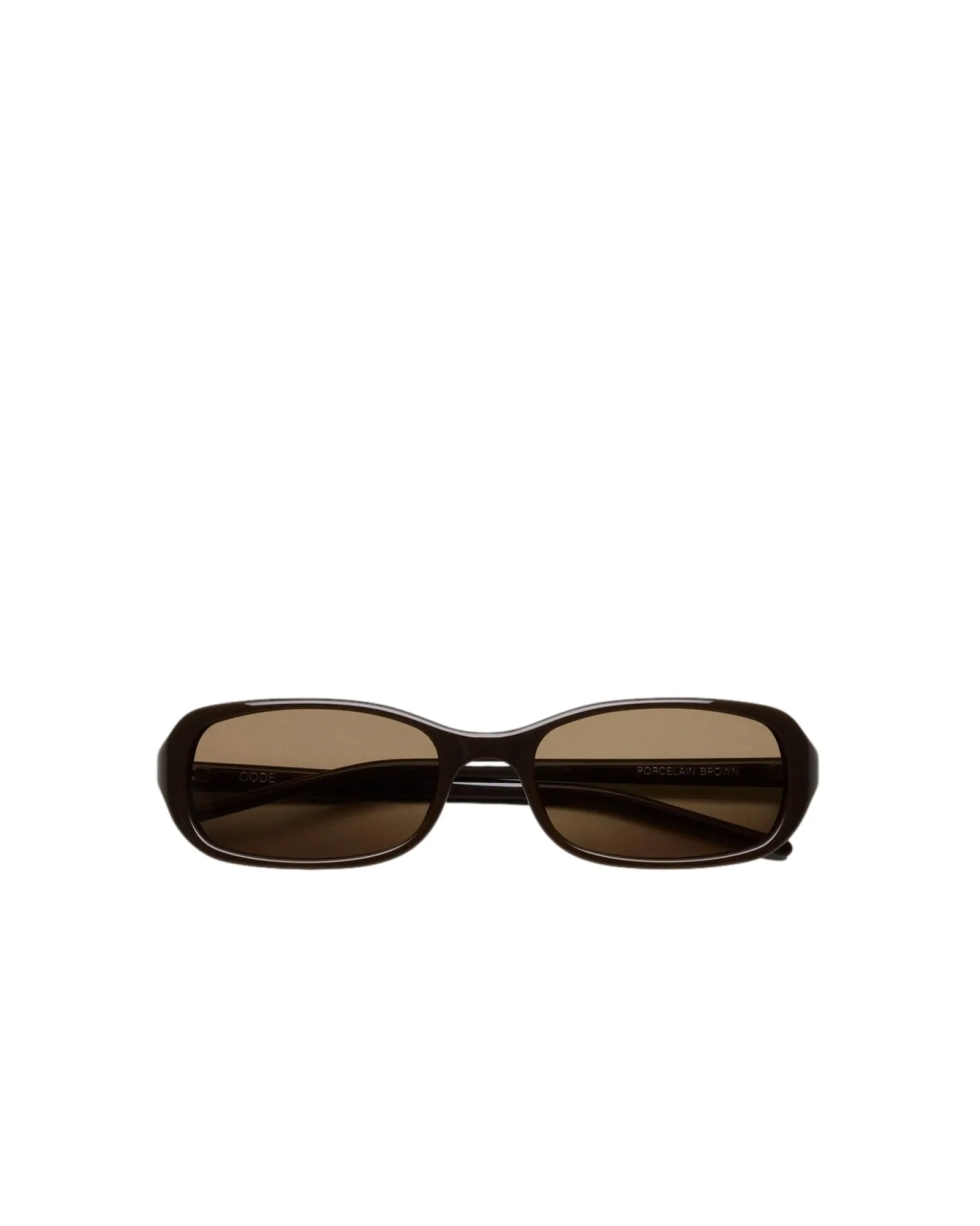 Code er en elegant oval silhuett med en utpreget lett profil og slanke stenger, signert med sølvmetall-merking på hver side. Håndlaget i premium Acetate Renew™, sammensatt av 42 % biobasert og 28 % sertifisert resirkulert plast.