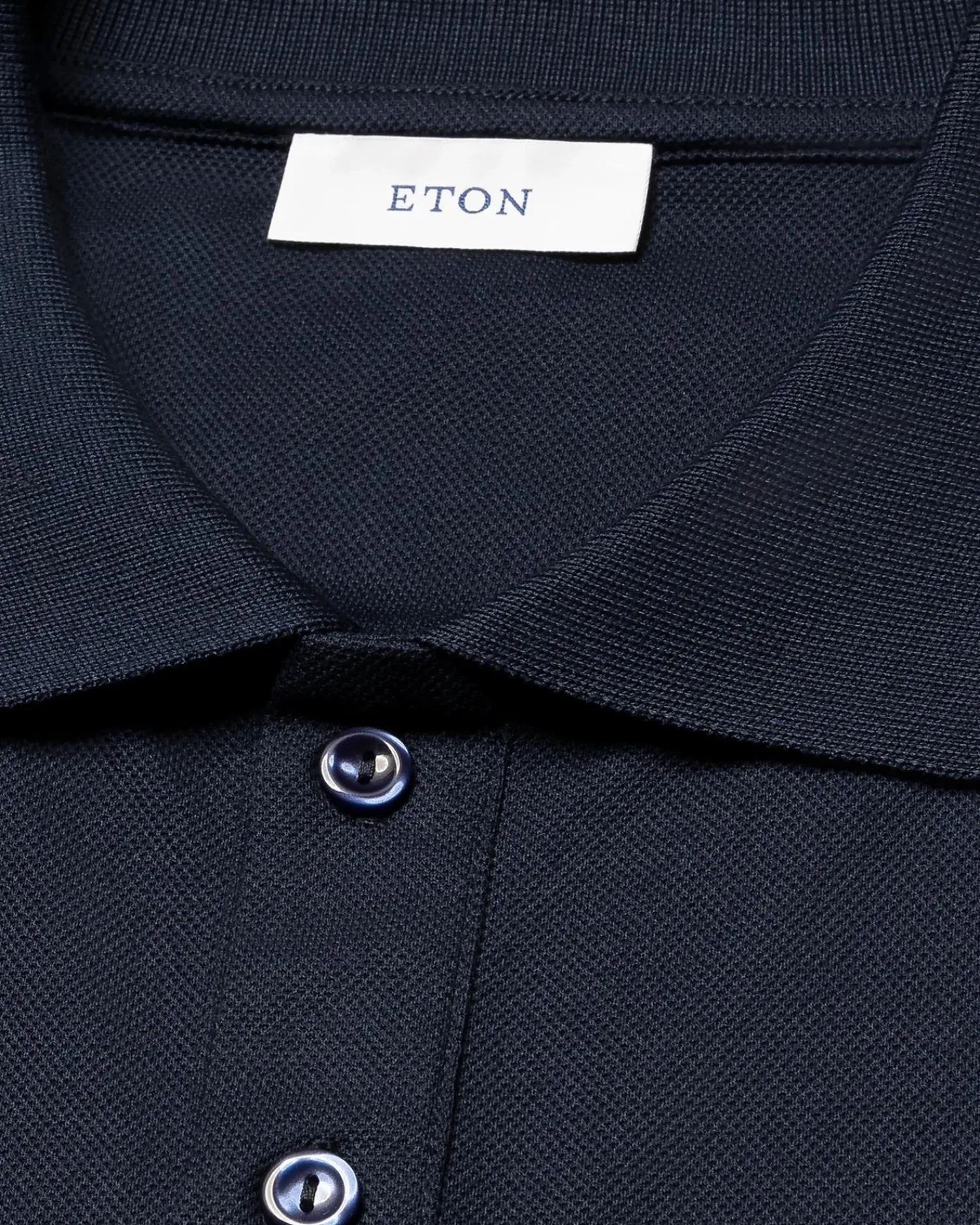 En vakker marineblå poloskjorte laget av et solid piqué-jerseystoff, strikket av Filo di Scozia-garn i Lombardia, Italia. Denne poloskjorten er designet for å gi deg ekstra mykhet og fleksibilitet, og har en strikket krage og mansjett, kombinert med en klassisk knappelukking for å skape et stilig utseende uten problemer. De blå knappene er valgt for å matche stoffet for et sammenhengende utseende.