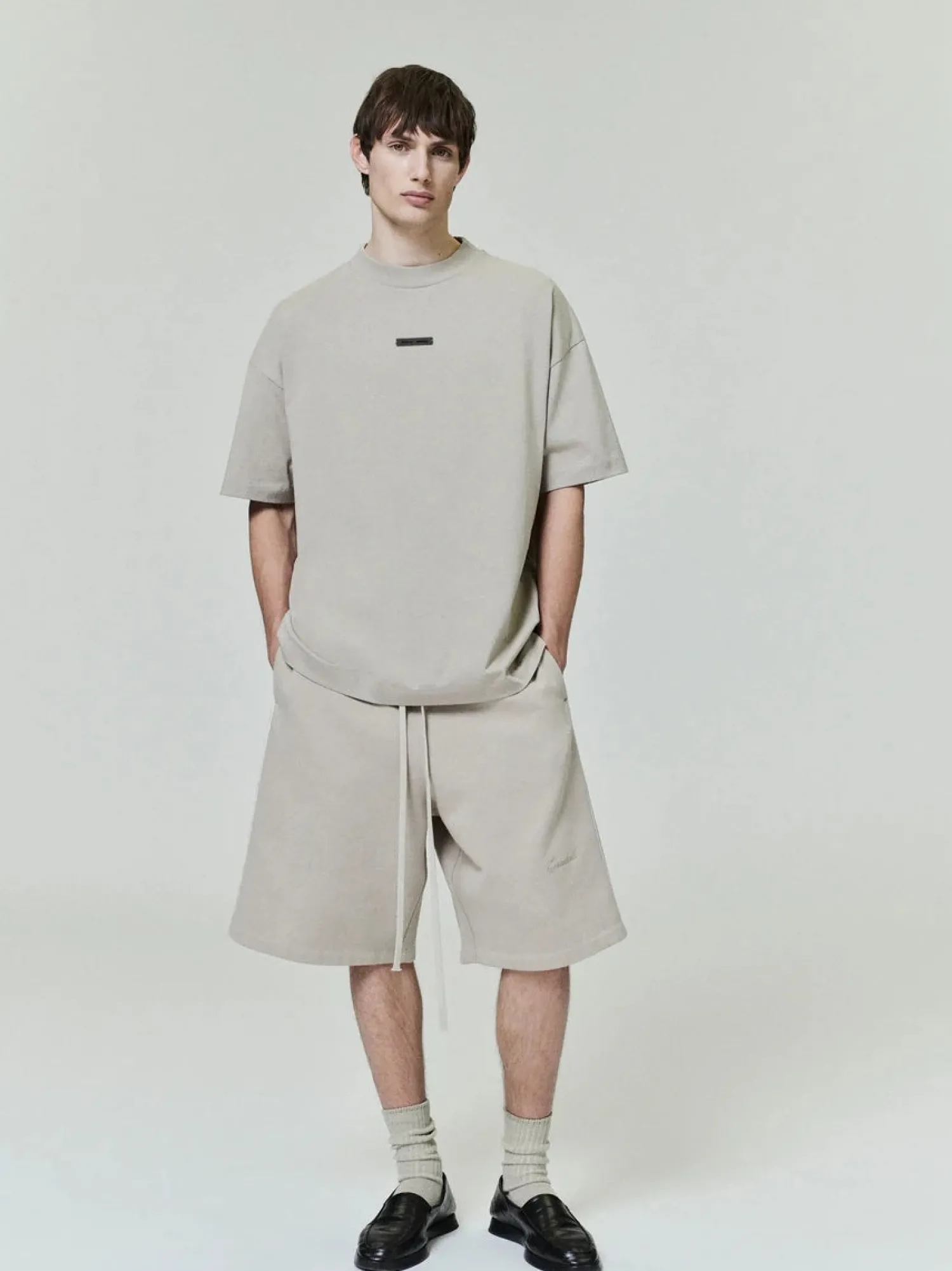 Den klassiske t-skjorten er laget av middels tung 100 % bomullsjersey. Den ribbestrikkede t-skjorten med rund hals har en klassisk passform med de avslappede Fear of God-proporsjonene som er egnet for hverdagsbruk. Merket inkluderer en gjennomsiktig gummiert etikett med teksten «Fear of God Essentials» midt foran og en ny metallisk logo med skråkant «Essentials Fear of God» på baksiden.