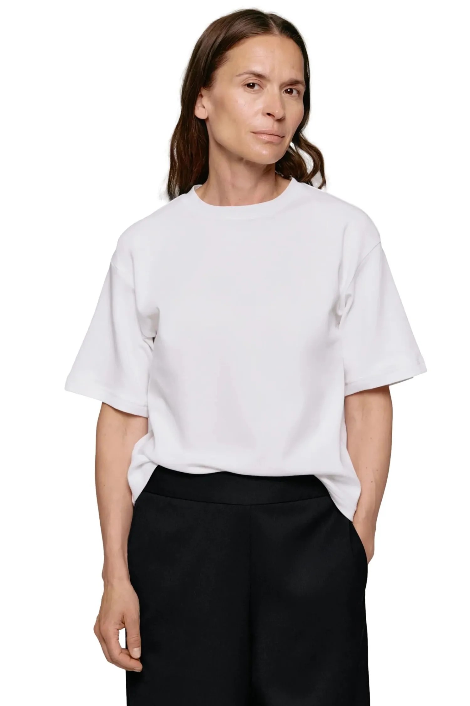 Boxy Half Sleeve Tee laget av signatur jersey i italiensk bomullsblanding med en litt overdimensjonert og avkortet passform.