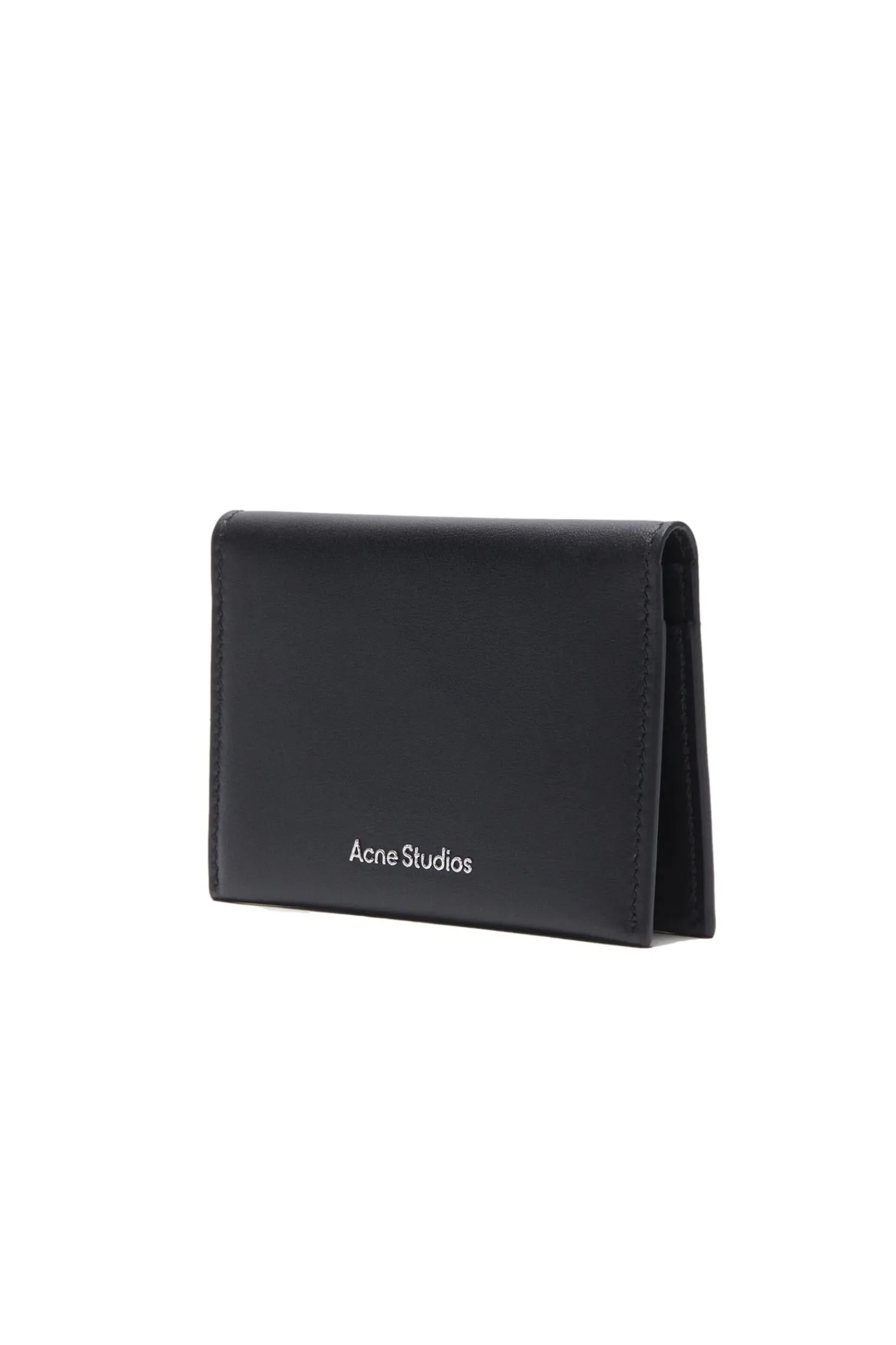 Denne lommeboken har en brettet åpning med kortlommer, laget av glatt skinn og detaljert med en Acne Studios-logo på forsiden.