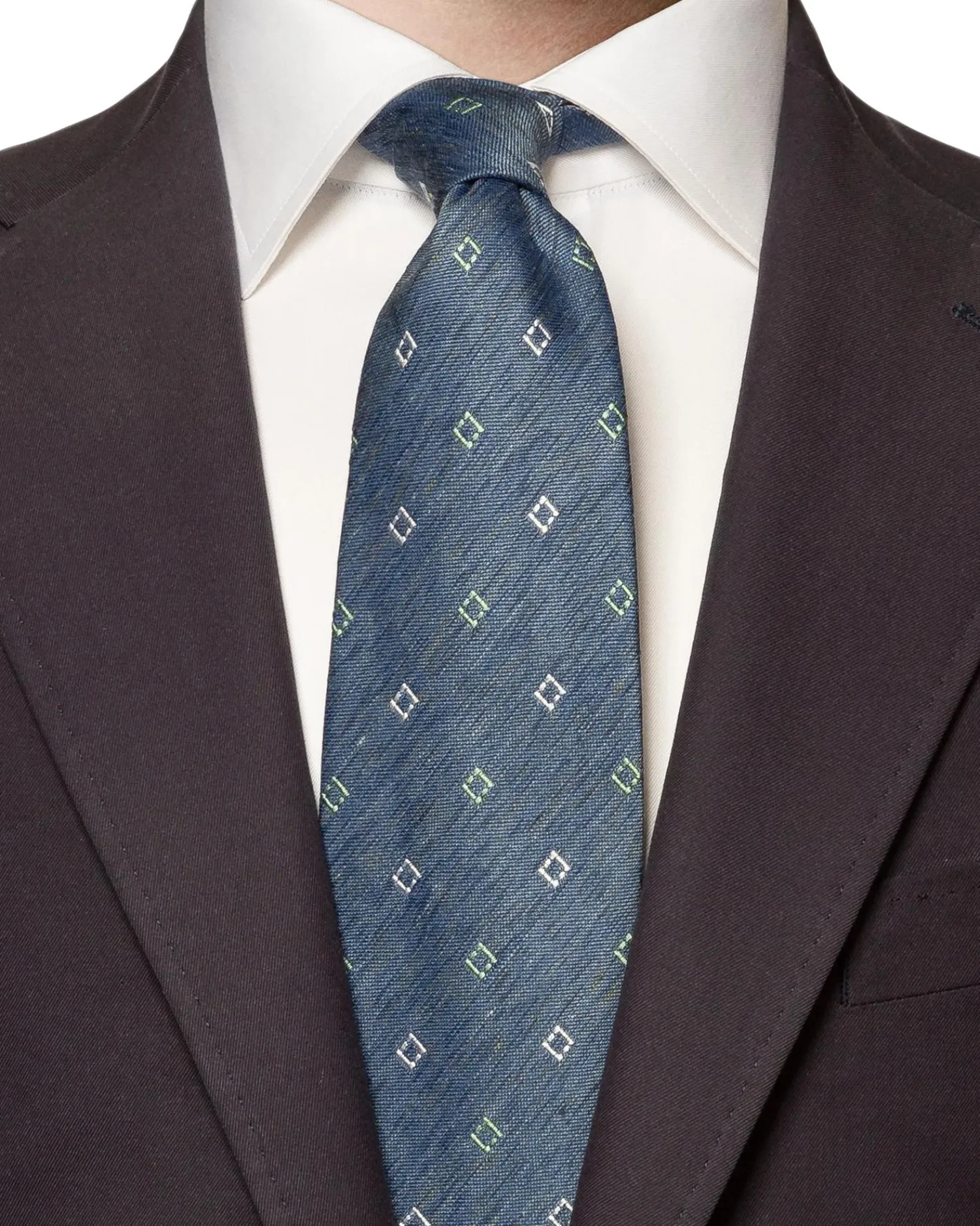 Tilbehør<Eton Geometric Silk Linen Tie Slips Marine