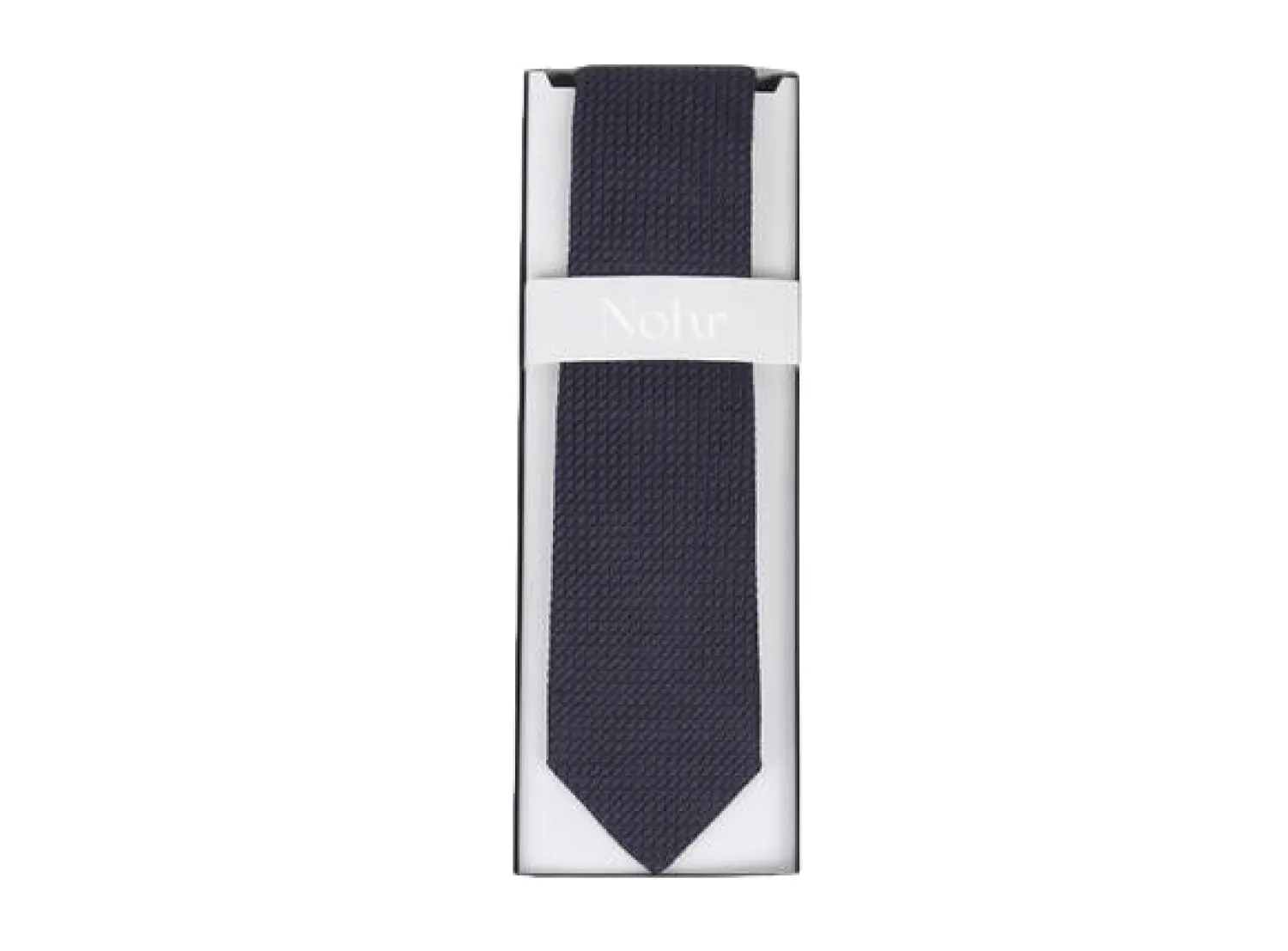 Oppgrader garderoben din med dette eksklusive NOHR navy blå grenadine-slipset, et perfekt valg for den moderne mannen som verdsetter kvalitet og stil. Laget av 100 % luksuriøs silke, dette slipset har en delikat vevet grenadine-struktur som gir et raffinert og sofistikert preg.