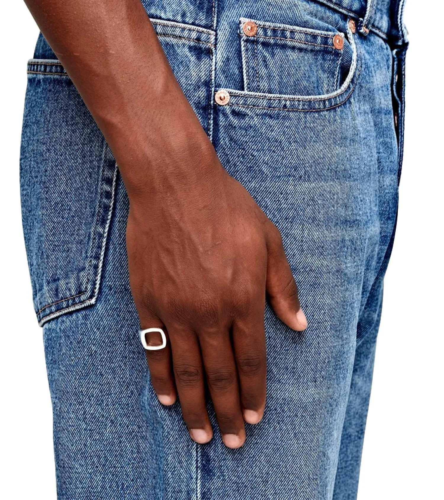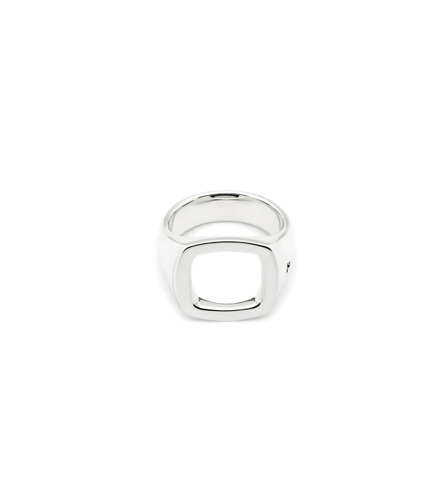 The Cushion Open er en klassisk signetring med en åpen topplate, designet for å danne den karakteristiske Tom Wood-cushionformen. Ringen er laget av høykvalitets 925 sterling sølv med en polert finish, belagt med hvit rhodium for å styrke overflaten og forhindre anløpning.