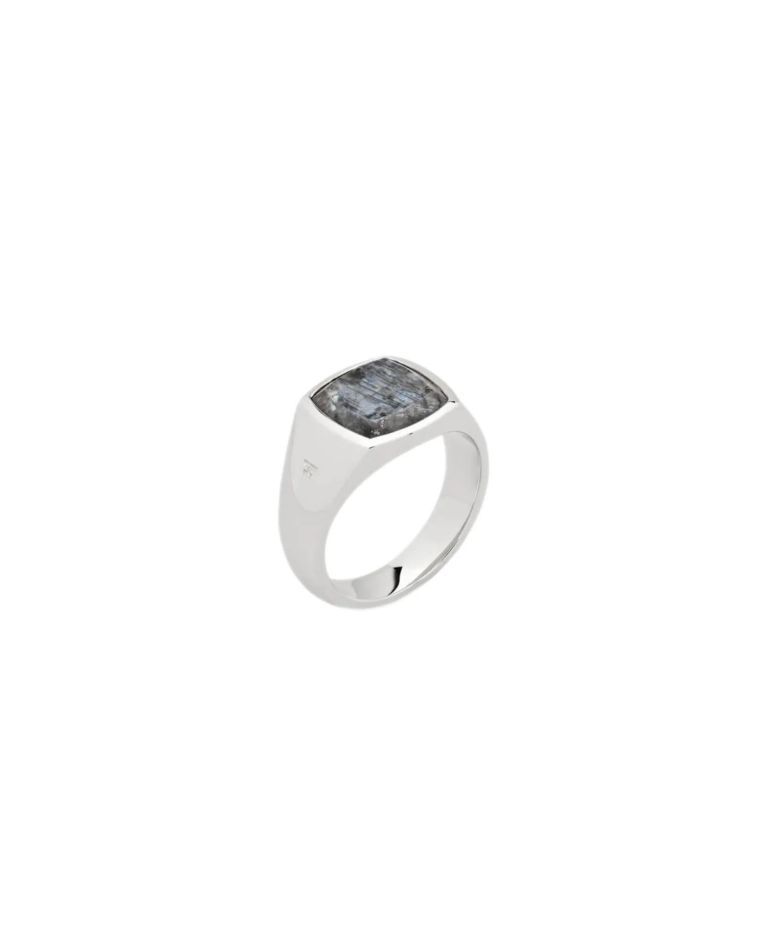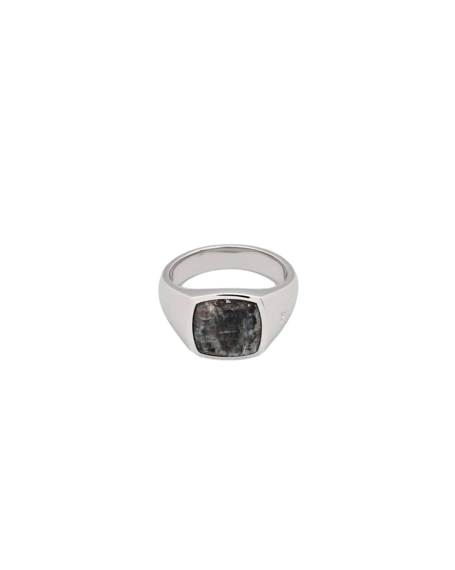 Kay Ring Larvikite er en mellomstor signetring, en Tom Wood-klassiker. Den har en skreddersydd larvikitt, ramme satt på en blank polert sølvoverflate.