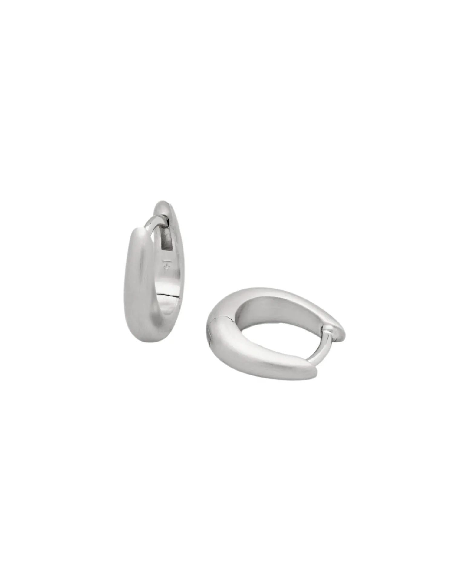 Et delikat par Huggies-øreringer, laget av 925 sterlingsølv med sateng-rodiumbelegg. Alle edle metaller er 100 % resirkulert.