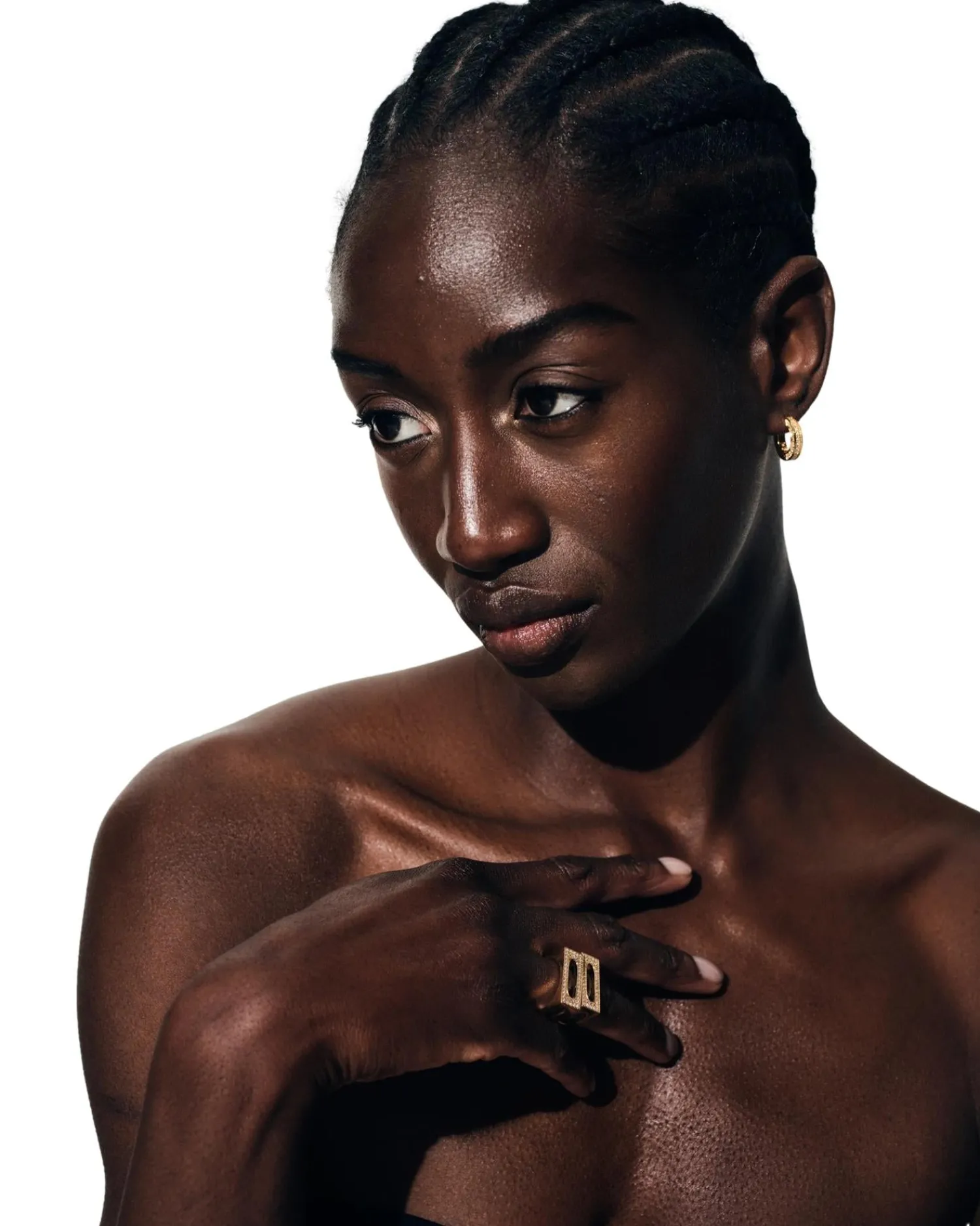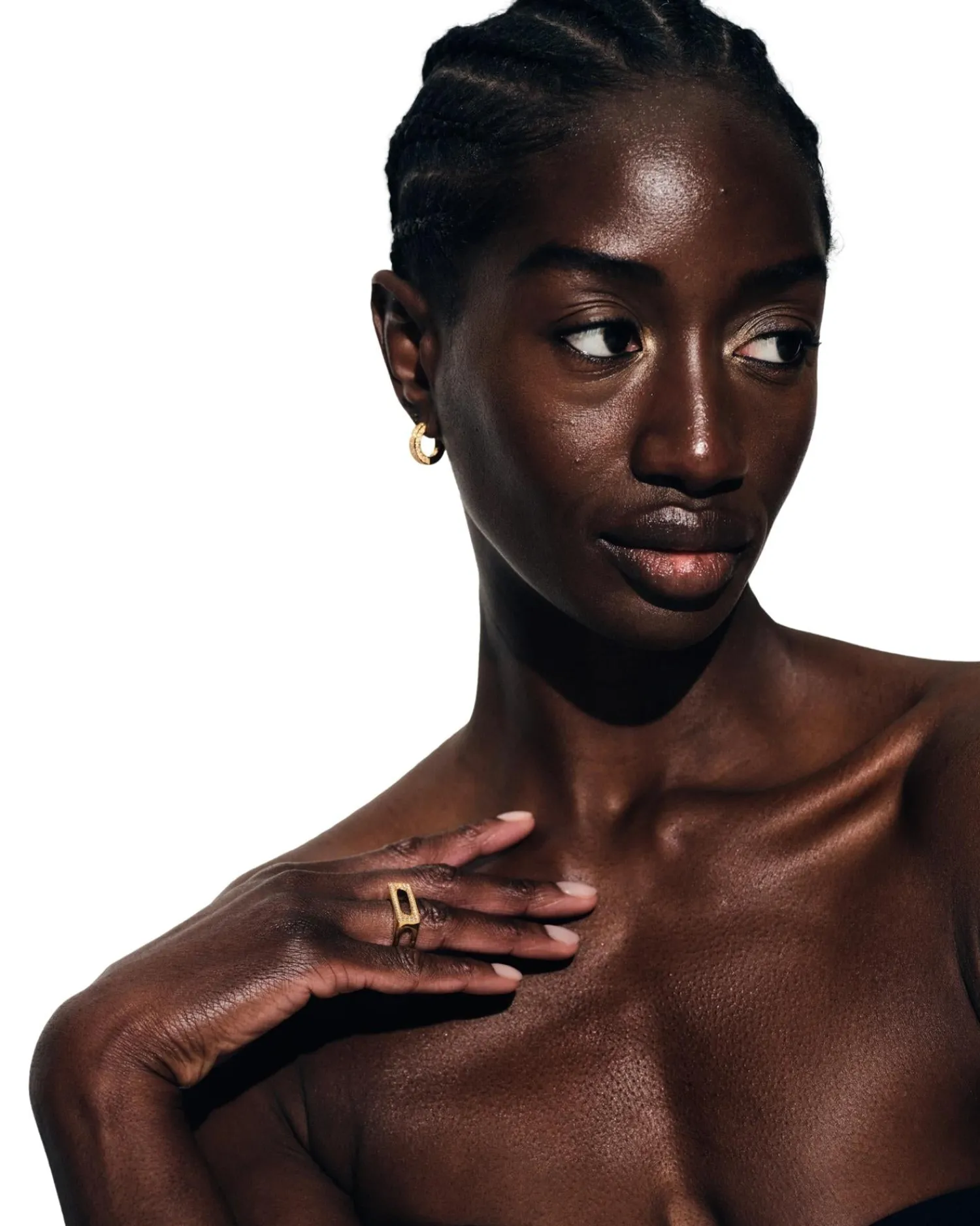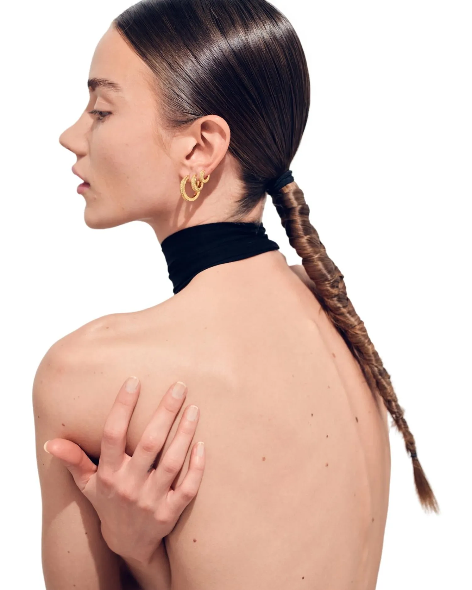 Nova Hoops Small Gold er runde gullstifter, som understreker den organiske kontrasten mellom stein og metall. Sett med hvite zirkoniumsteiner i en halv sirkel, etterlater Nova-bøylene et klassisk og lyst element til øret. Kombiner med Nova Hoops i medium for et eskalert utseende.