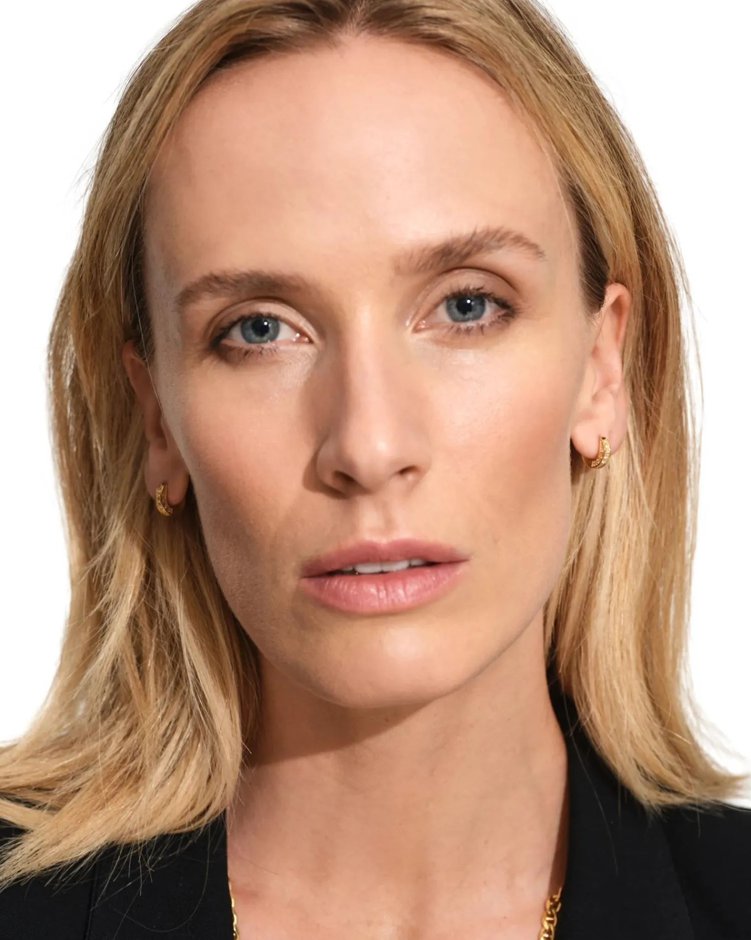Nova Huggies er miniatyrringer i gull satt med hvite cubic zirconia steiner i en halv sirkel. Ved å klemme øreflippen alene eller stablet i kombinasjon med andre, legger Nova Huggies til som et klassisk og lyst element til øret ditt.