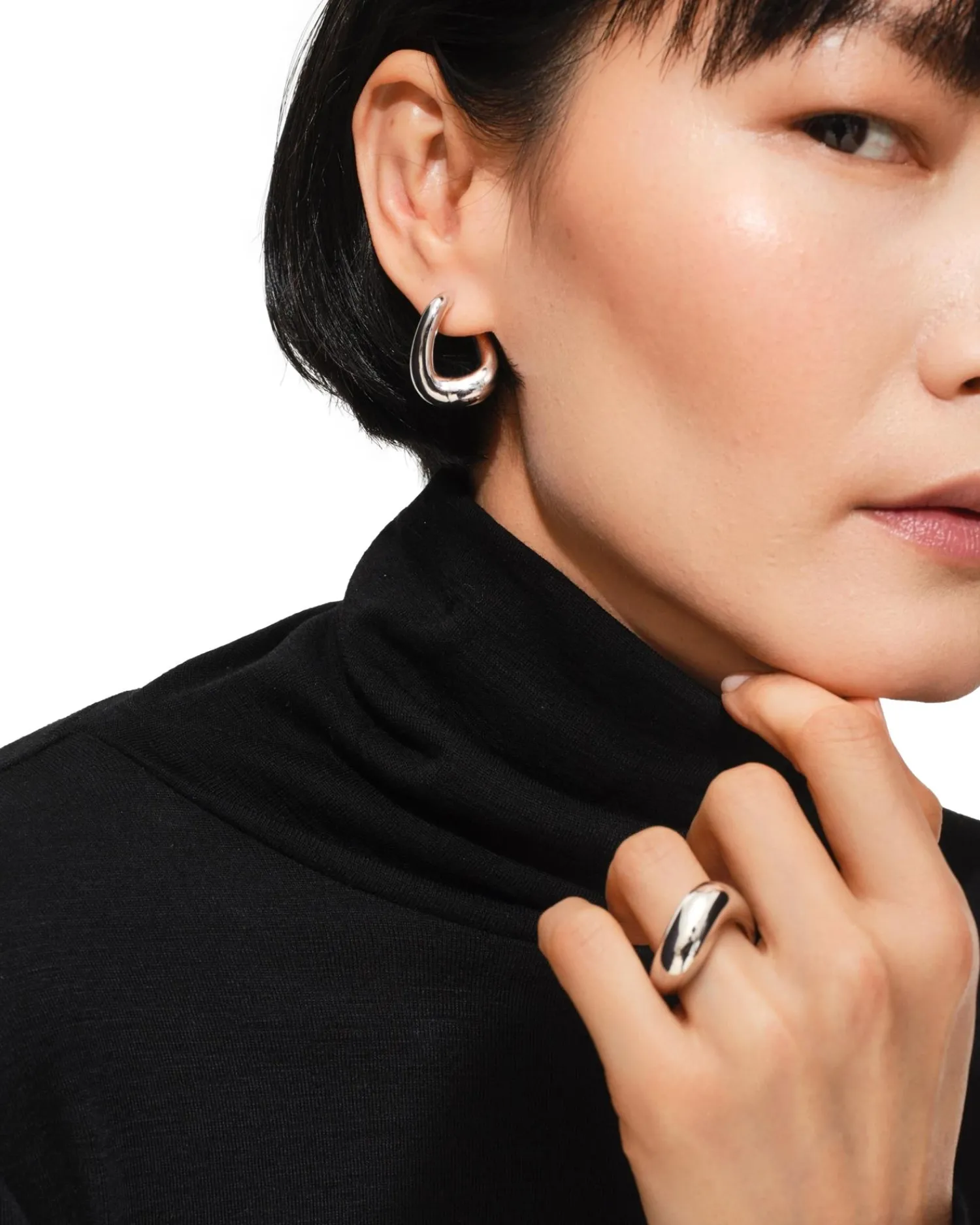 Et par klassiske ringer i vridd form, laget av 925 sterlingsølv med polert hvit rhodiumbelegg.
